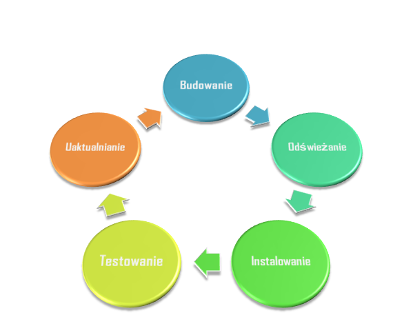 Cześć środowisk / komponentów potrzebuje uaktualnienia, o patche, o kolejne wersje itp. Te czynności muszą przechodzić ścieżkę zarządzania zmianą tak jak zmiany funkcjonalne w systemach. Podobnie zmiany infrastrukturalne również powinny być analizowane i przechodzić ścieżkę zdrowia przez środowiska testowe.